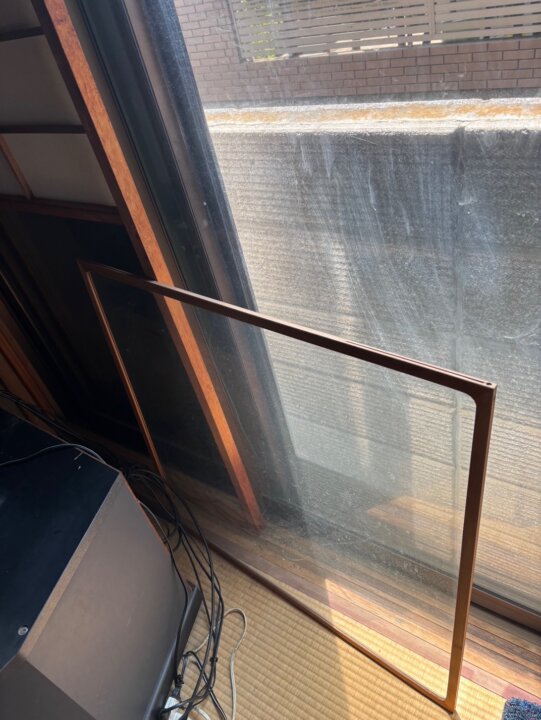 雪見障子の外せる部分を取外してから切断して取外しました。この方法しか思いつきません。。。